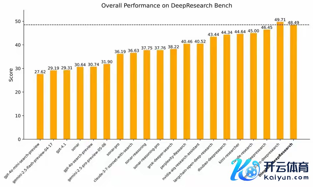 11月12日,海外巨擘评测DeepResearch Bench最新公布了最新测试遵守:一项由中国科技企业研发的深度看管系统“Dingtalk-DeepResearch” 以48.49位列行家第二,仅次于取得49.71分的gemini-2.5-pro-DeepResearch,同期,OpenAI、Claude分列行家第三四位。这也记号着中国企业级AI时候迈入海外第一梯队。