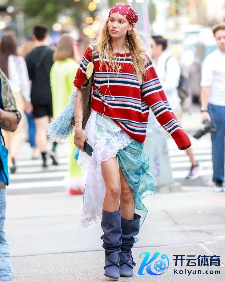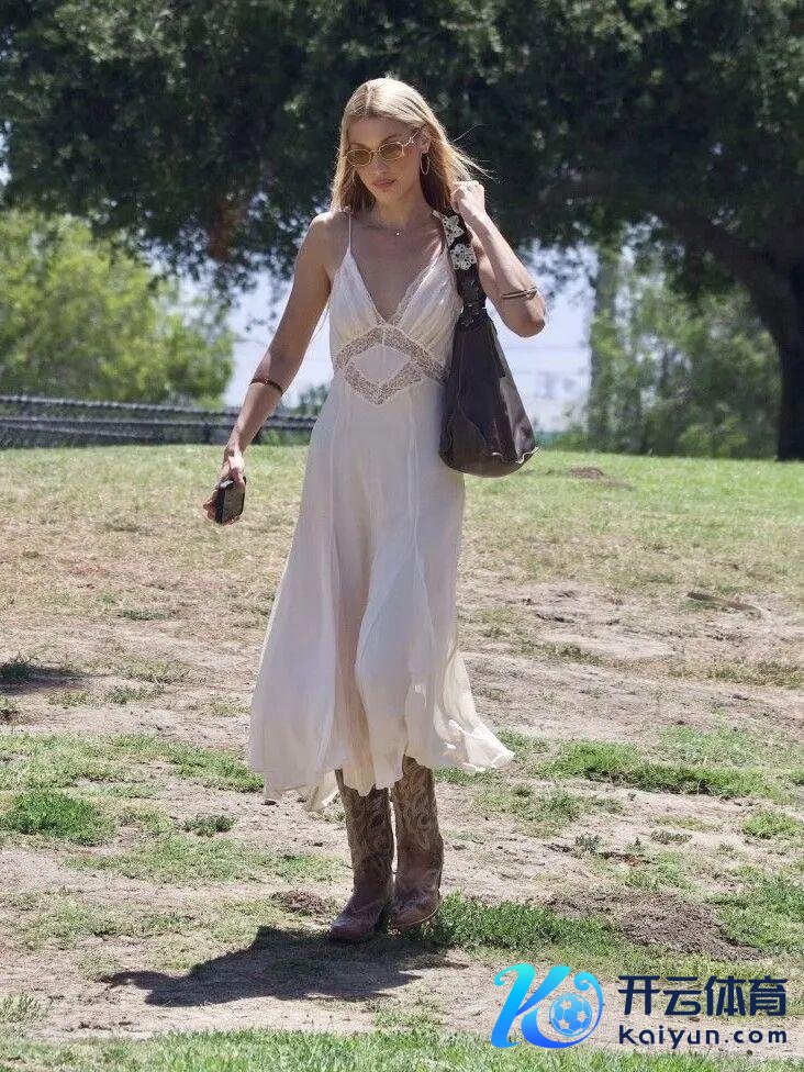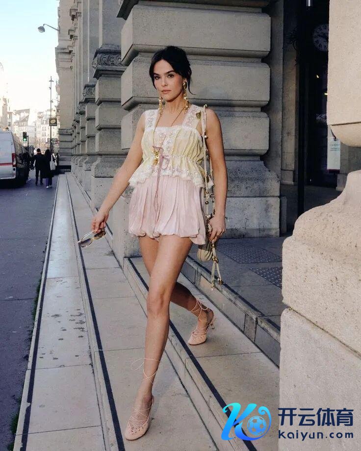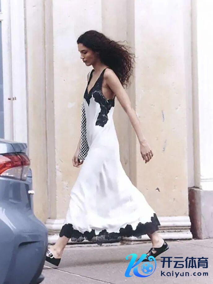 细小的蕾丝裙摆随风摇曳,眼下的麂皮靴增多了厚度与质感,胸前层叠的项链跟着方法轻轻悠扬,纤细的织纹与硬朗的质料造成对话,展现出大要而有劲量的均衡。