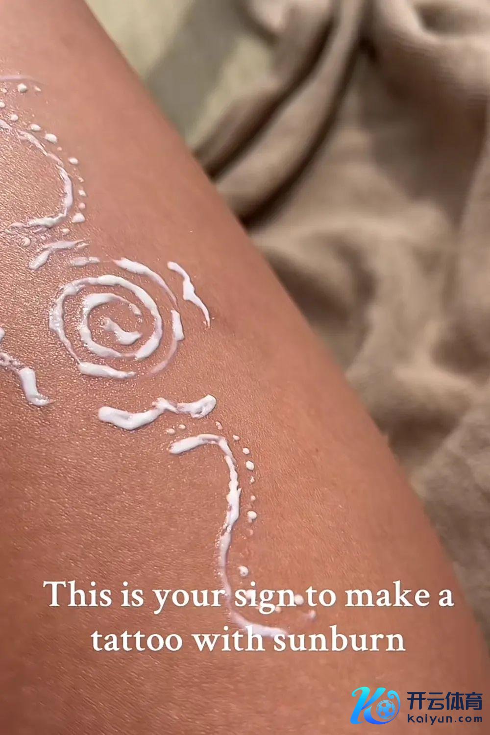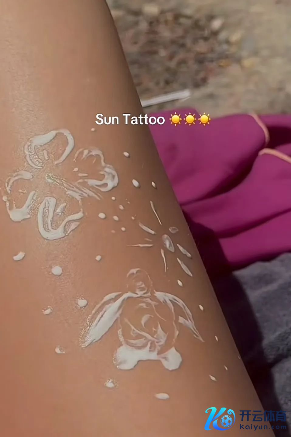 度假中的东谈主们依旧整出新技俩,晒痕纹身(sunburn tattoo),期骗贴纸/防晒贴在皮肤上再晒黑变成一个反差,像纹身一样,在皮肤上晒出可爱的图案,比如爱心、星星、小花之类的。它火的原因很浅易,那等于夏天拍照绝顶上镜,自带度假氛围感。